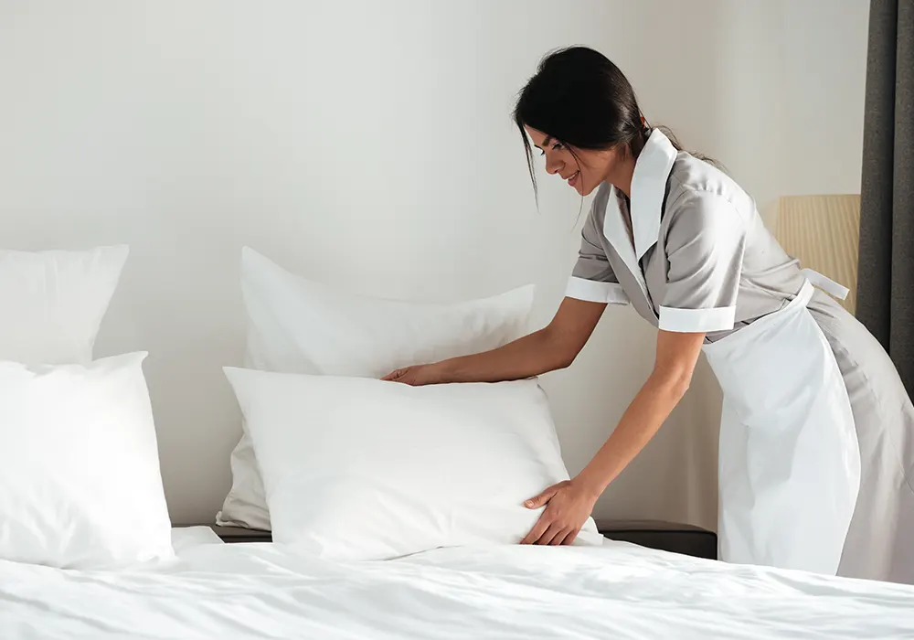 Bed making, towel folding, surface polishing, trash removal, and full reset.